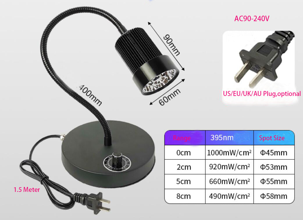 180W UV Desk Lamp Ultraviolet Glue Curing Light 365nm 395nm 405nm Circuit Repair with Adjustable Energy