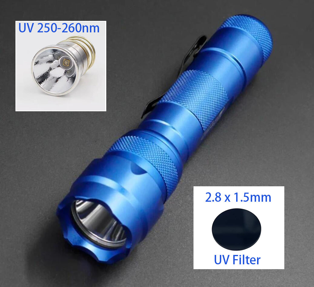 5W UV 255nm 254nm 275nm 310nm 340nm UVC LED Short Wave Flashlight with Filter For Mineral Stone Disinfection