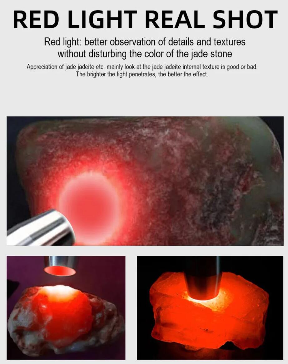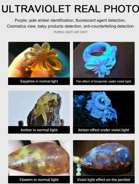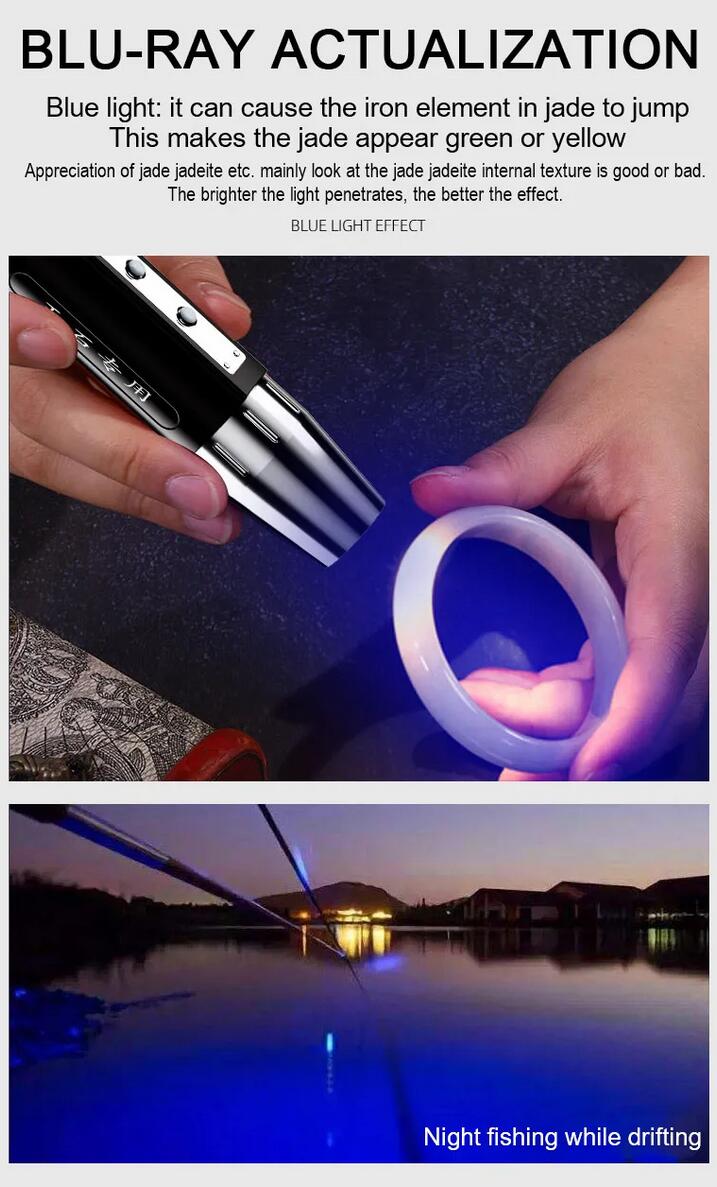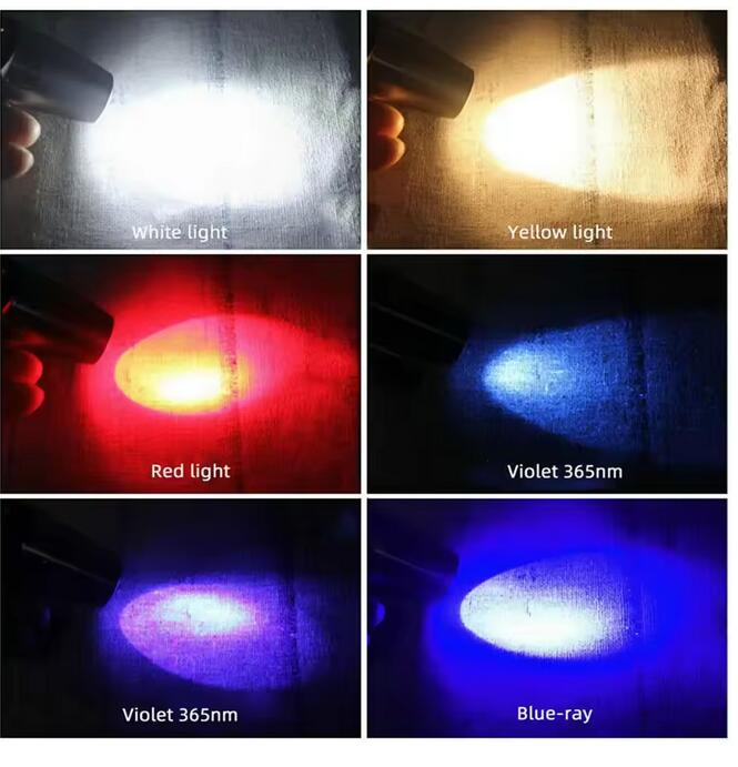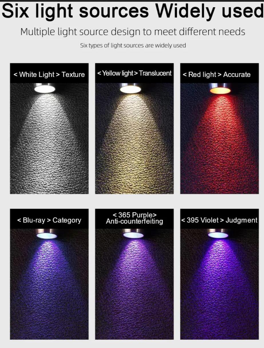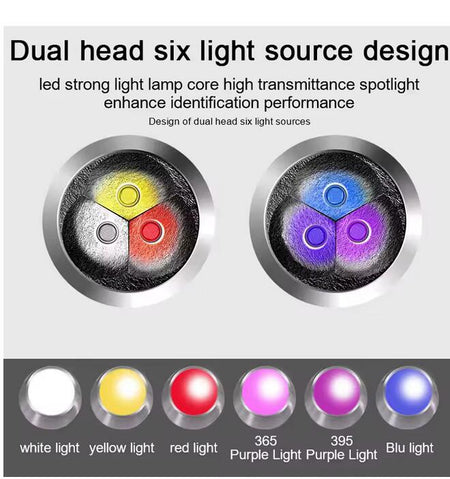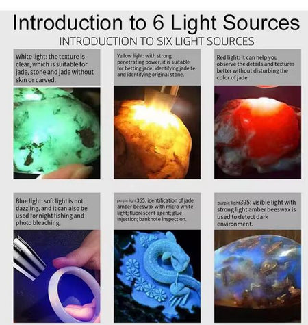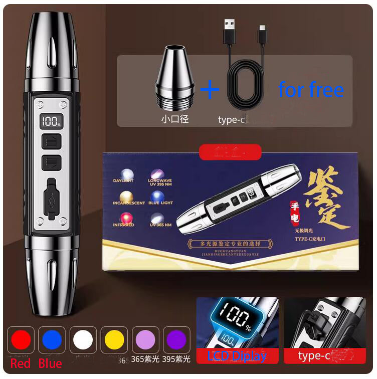 6-in-1 White Red Blue UV 365nm/395nm LED LCD Flashlight USB charging Jewelry Jade Stone