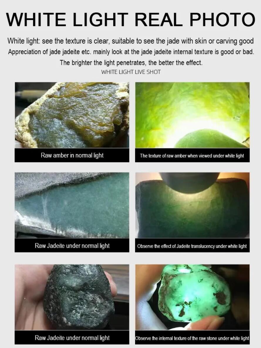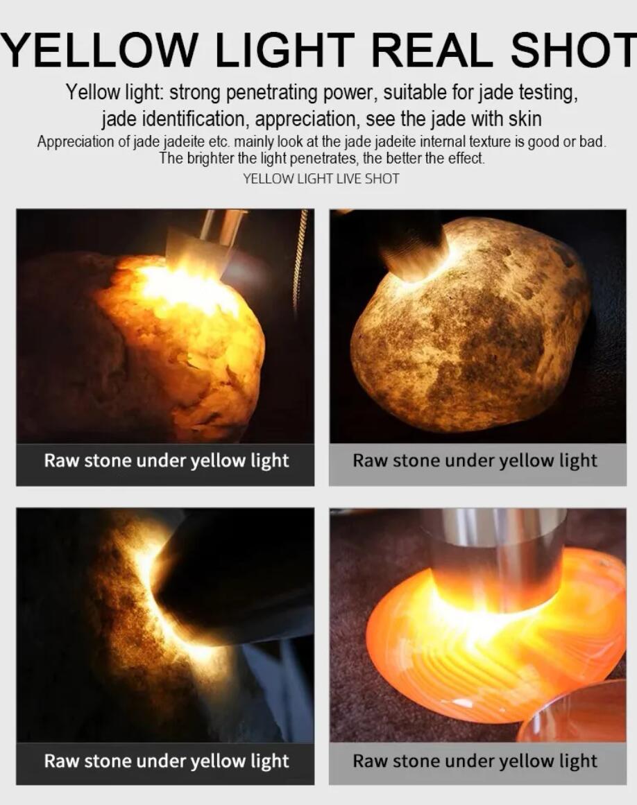 white light / yellow light (use): identification: jade