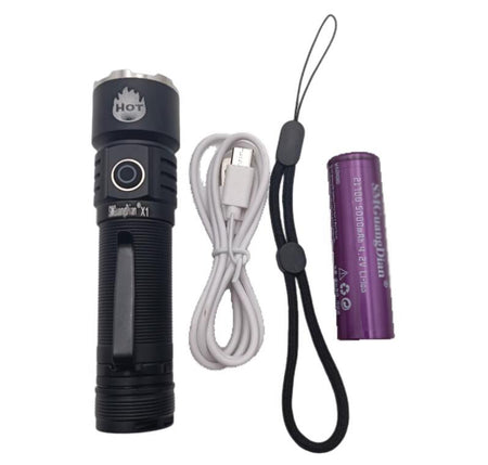 Black Duty Flashlight 5000 Lumen LED Long Range USB C Rechargeable+Battery