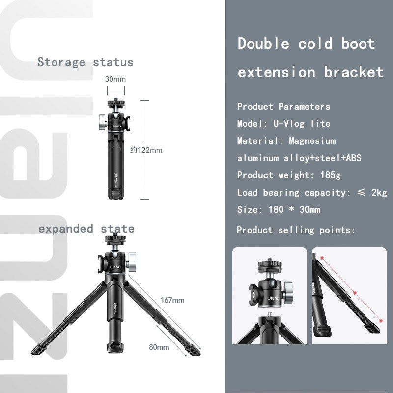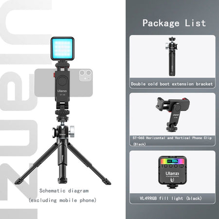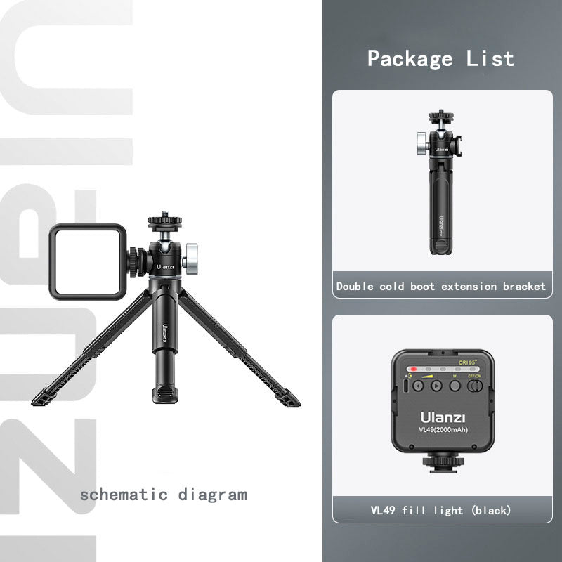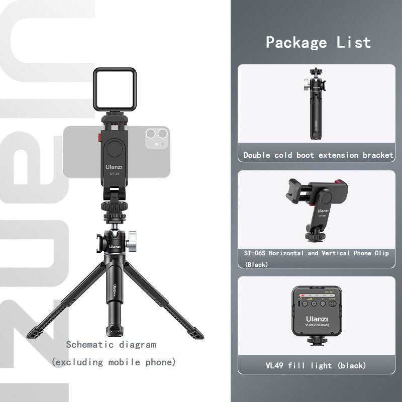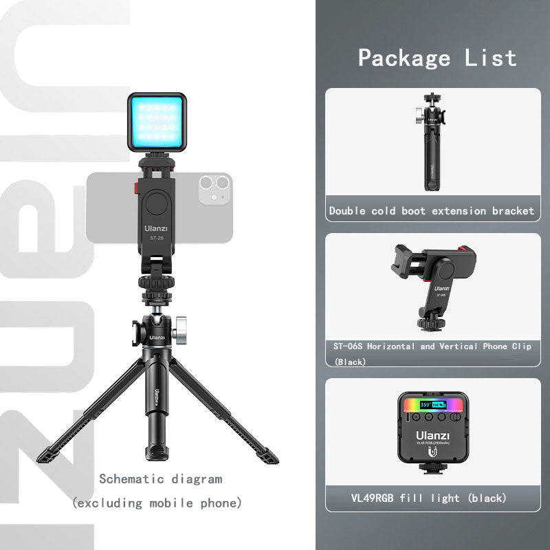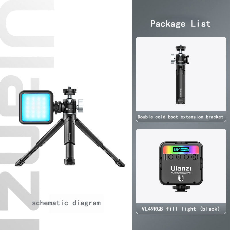 Type Other Colors [Standard] Double Cold Boot Extension Stand, [Product A] Can Extend Tripod, [Product B] Double Cold Boot Metal gimbal, [Camera fill light (cold light)] Double Cold Boot Extension Tripod+VL49 fill light, [Camera fill light (cold light+RGB)] Double Cold Boot Extension Tripod+VL49RGB fill light, [Horizontal and Vertical Camera Clip Package] Double Cold Boot Extension Tripod+ST-06S Horizontal and Vertical Camera Clip, [Cold Light+RGB Fill light Package] Double Cold Boot Extension Tripod+ST-06S Horizontal and Vertical Camera Clip, [Cold Light Fill light Package] Double Cold Boot Extension Tripod+ST-06S Horizontal and Vertical Camera Clip+VL49 fill light, [Cold Light+RGB Fill light Package] Boots can be extended with tripod+ST-06S horizontal and vertical shooting phone clip+VL49RGB fill light