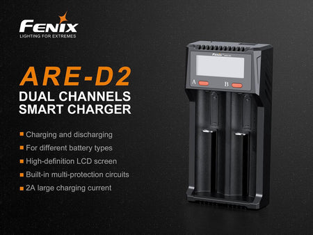 Fenix ARE-D2 USB Charging LCD Battery Charger FOR 18650 18350 21700 26650 14500 AA AAA