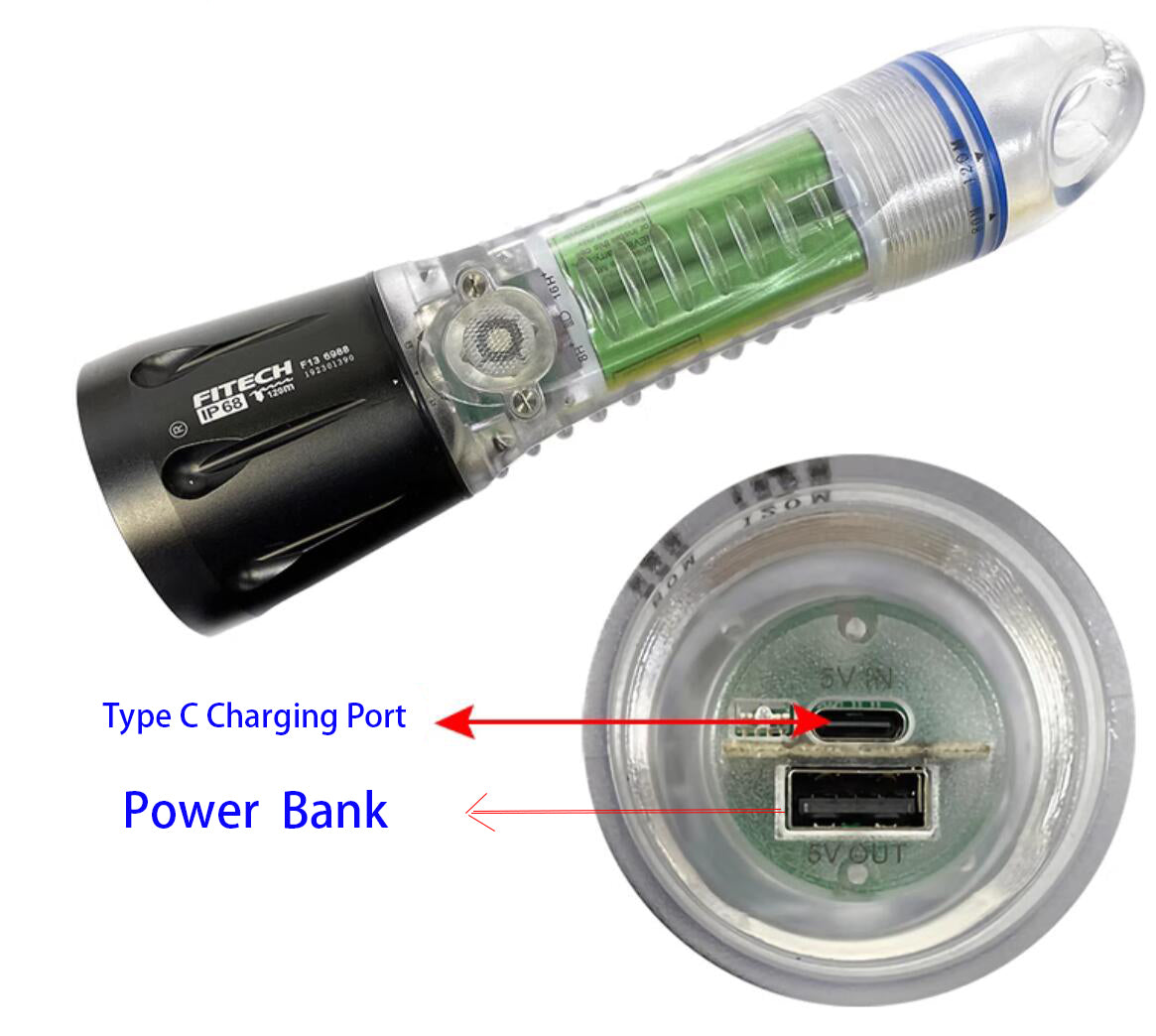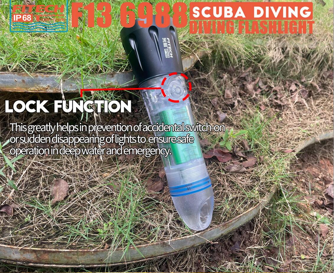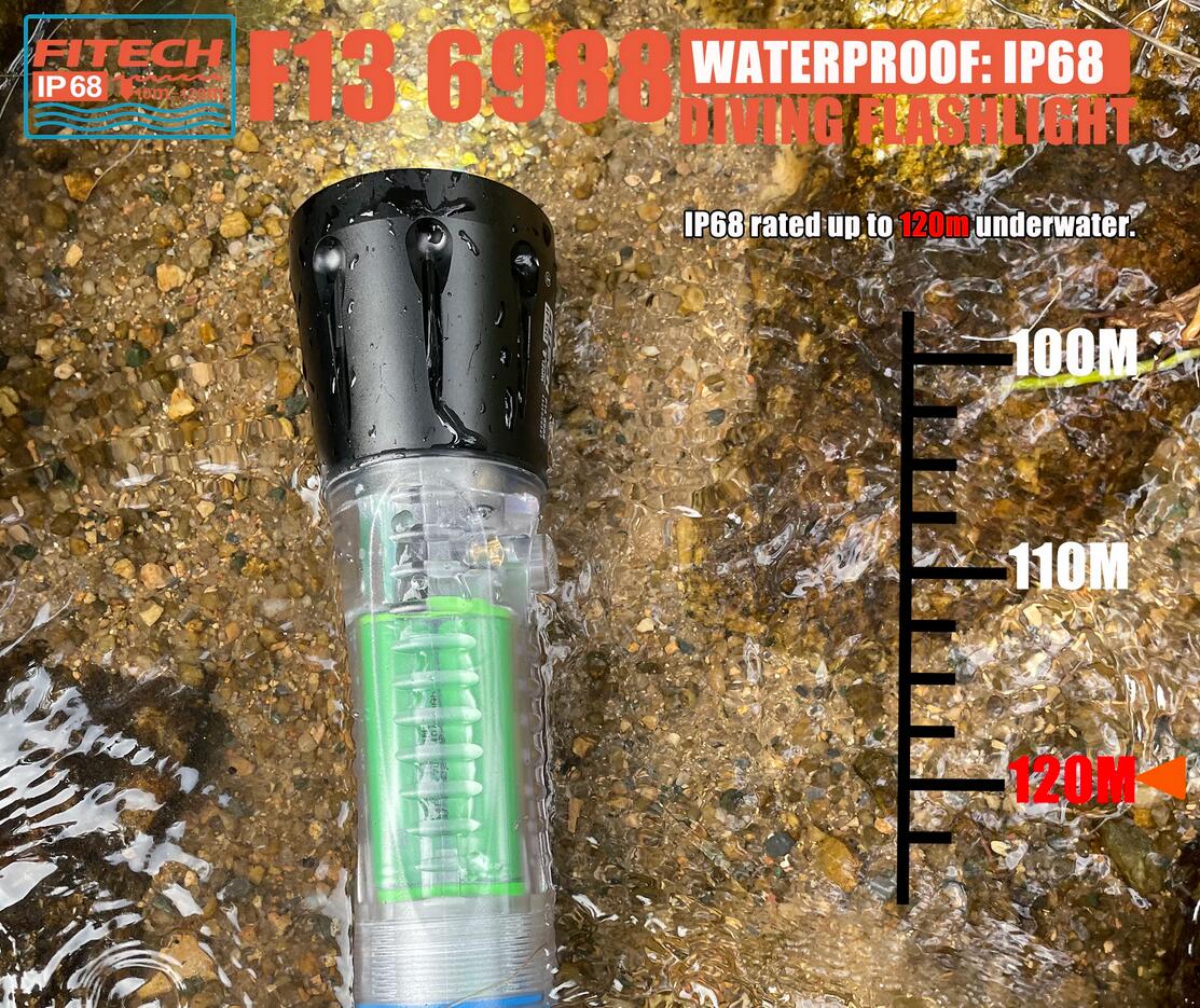 Fitech F13 Scuba Diving Light Built-in 14000mah Battery Flashlight USB C Rechargeable 1000 Lumen LED Waterproof Torch -Transparent