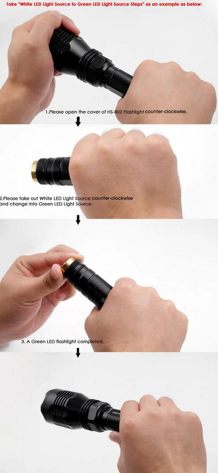 Green Red White 850nm 940nm LED Module Pill Replaceable HS-802 Flashlight Torch