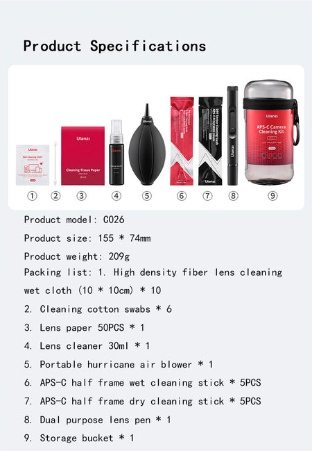 Color [Half frame] 26 in one camera cleaning kit, [APS-C] sensor cleaning stick (3 dry sticks+3 wet sticks), [Full frame] 26 in one camera cleaning kit, [Full frame] sensor cleaning stick (3 dry sticks+3 wet sticks), CO73 integrated cleaning air blow model standard