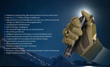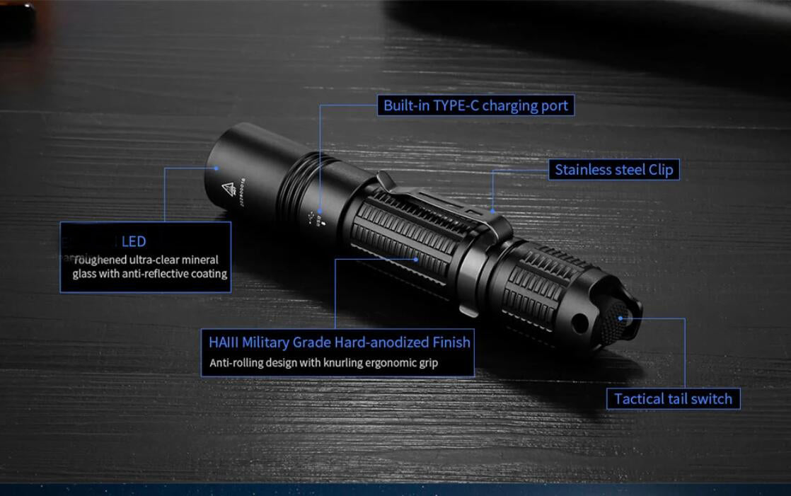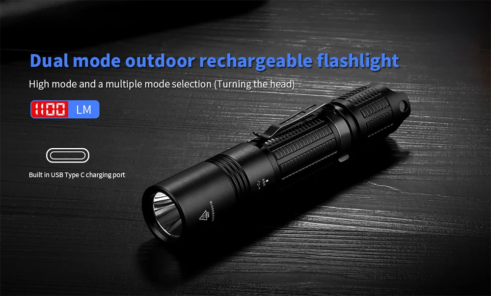 Jetbeam TAC flashlight 1100lm EDC torch type-C USB charging for hiking camping,walking etc