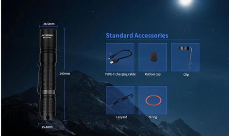 • Waterproof Design :Designed with an IPX8 waterproof rating, this flashlight can withstand harsh weather conditions, making it a reliable tool for outdoor enthusiasts.