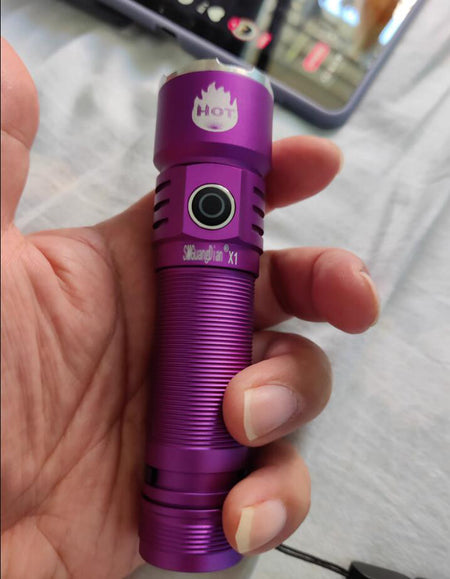 Purple Duty Flashlight 5000 Lumen LED Long Range USB C Rechargeable+Battery