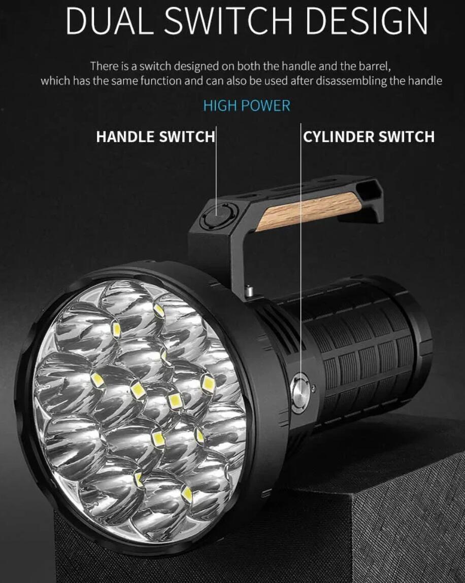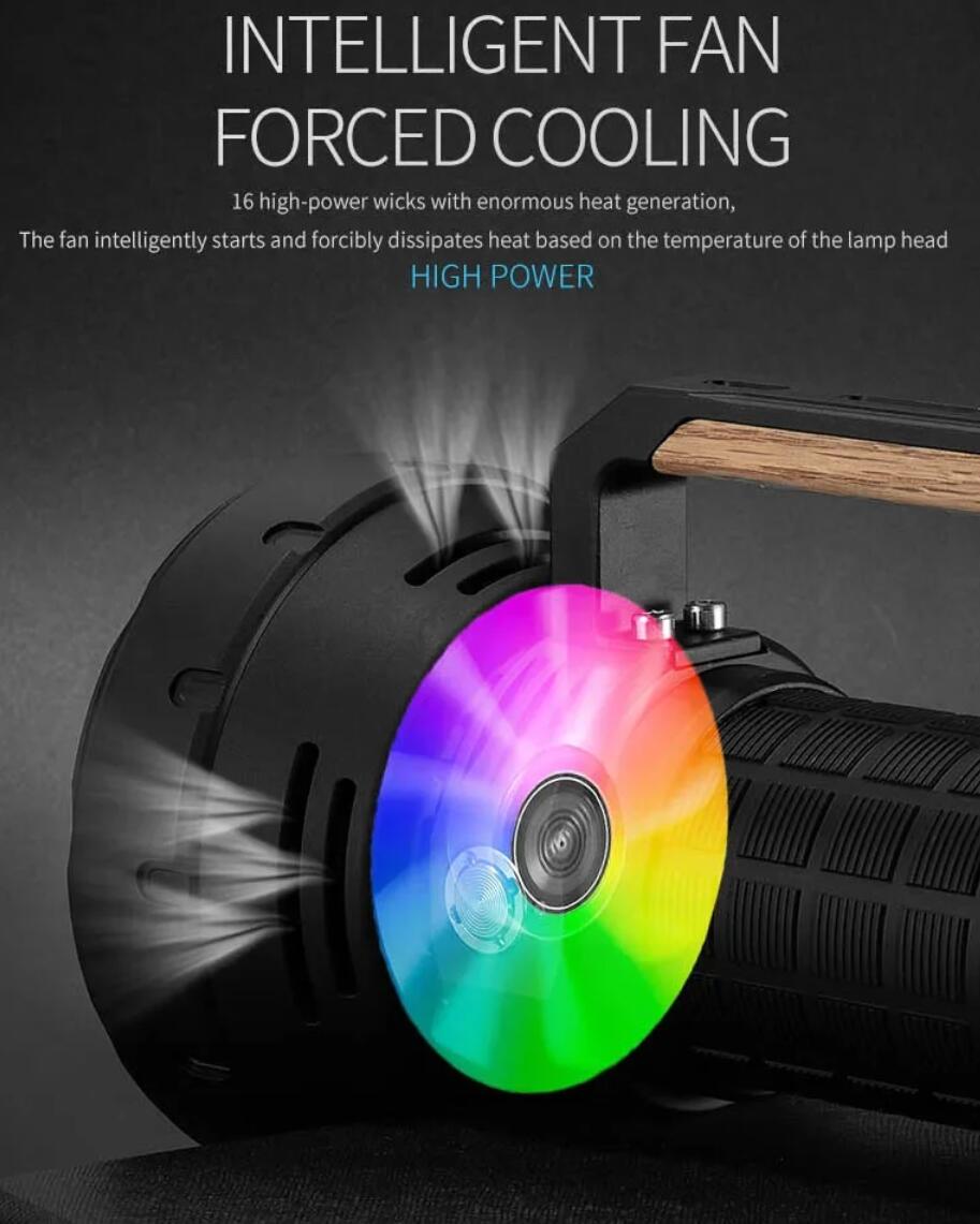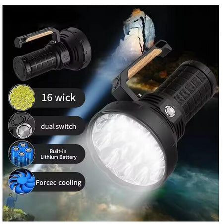 Super Bright Search Flashlight USB C Rechargeable 50000Lumen 16x LED with Cooling Fan/Dual Switch/Built-in Battery/Power Bank