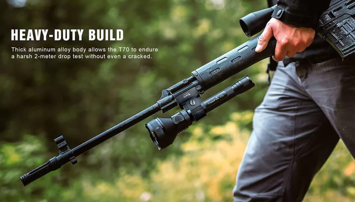 Thick aluminum alloy body allows the T70 to endure a harsh 2-meter drop test without even a cracked.