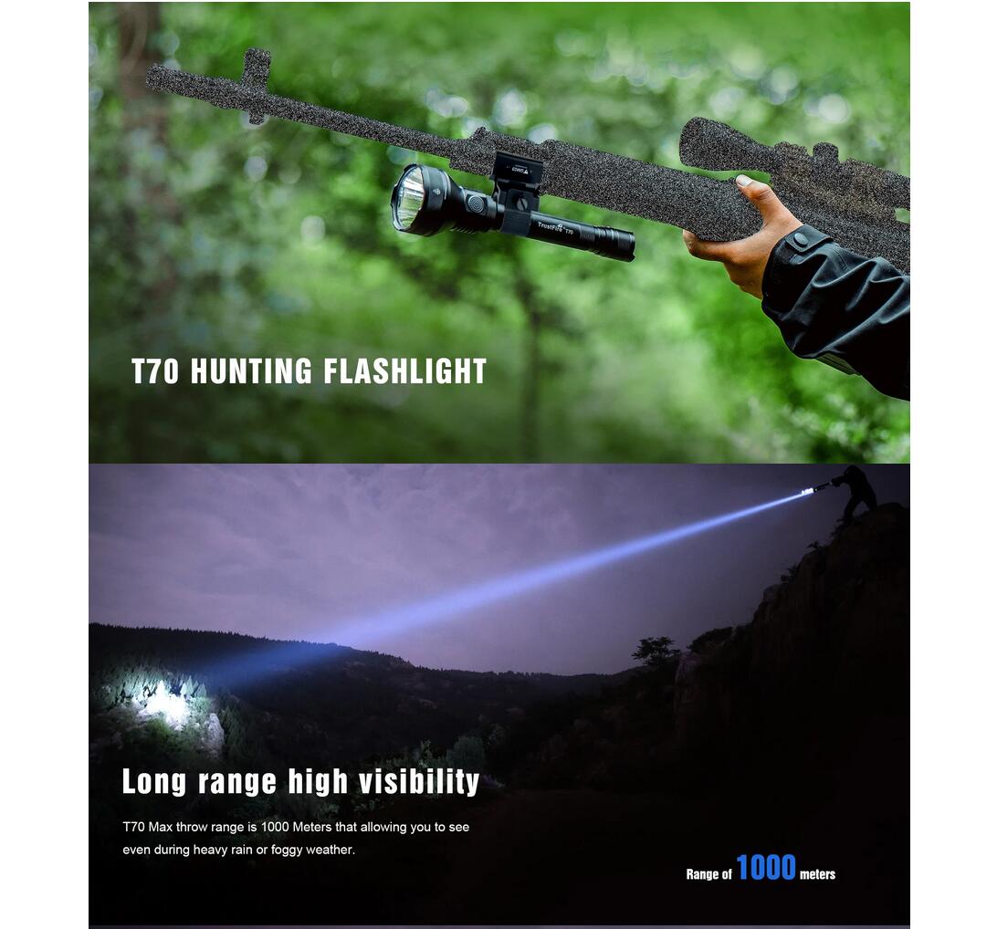 - T70 ultra long range 1000 meters and compact tactical hunting flashlight