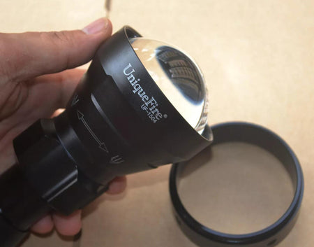 67MM Lens rotary focusing function enable the ability to focus in for a tight spotlight or back out for a flood effect, especially designed for long range illuminations. UF1504 can illuminate much farther with focused beam, compared with illuminator without focusing functions.