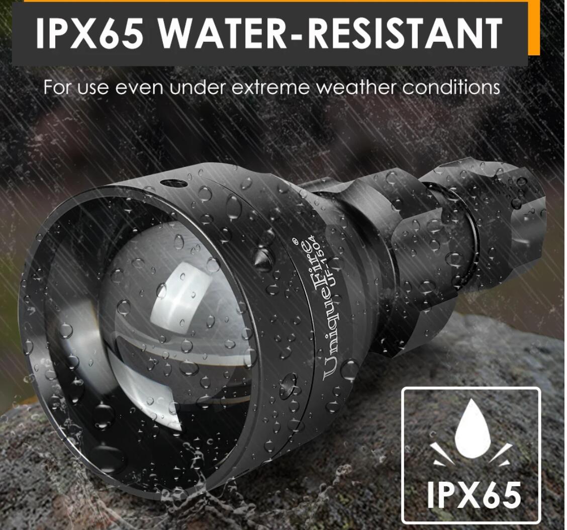IP65 Weather Resistance & Shockproof-The torch body is made from aircraft-grade aluminum which is then low temperature (-20o C) Hard Anodized tactical black., designed for harsh outdoor environments.