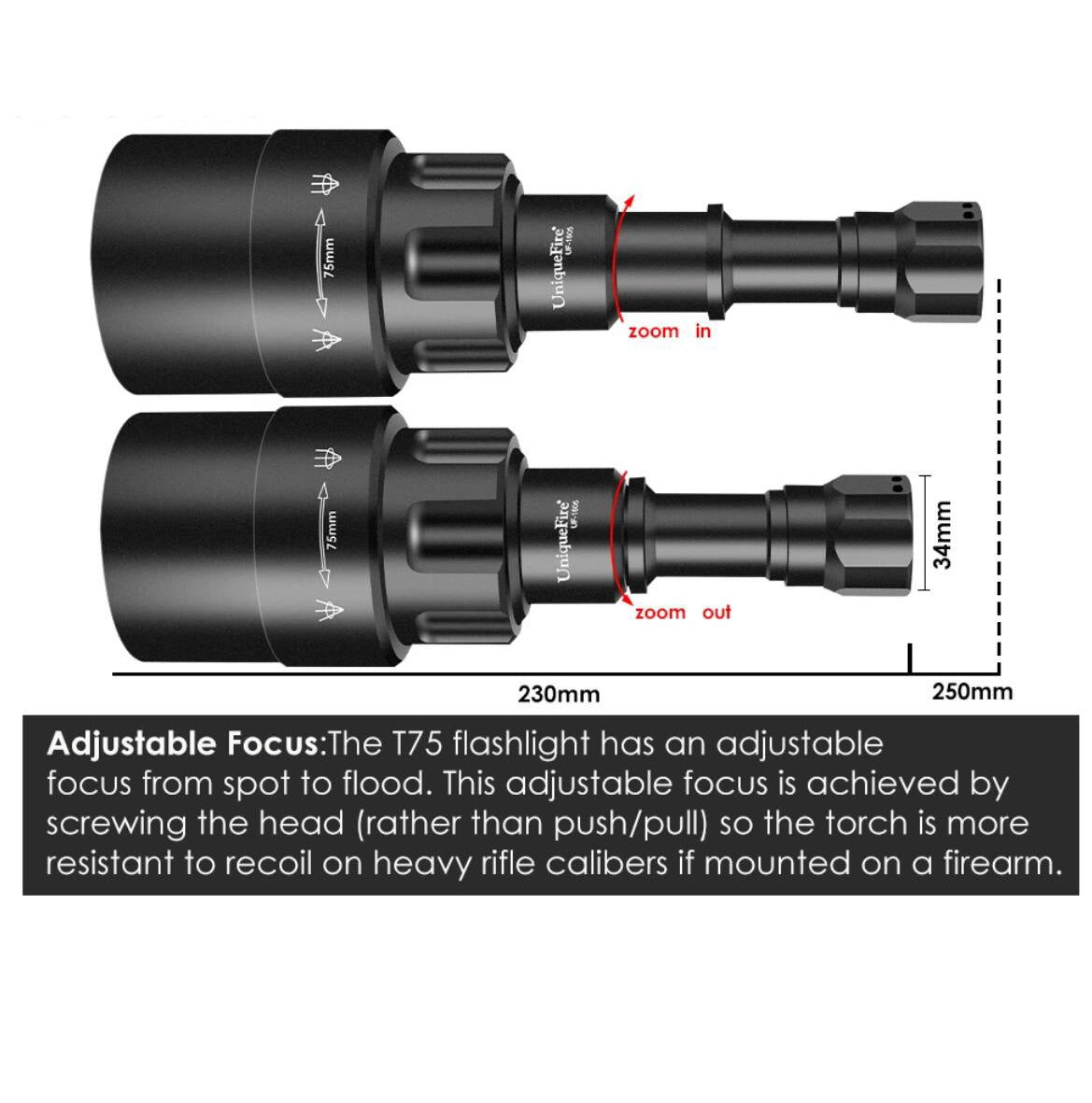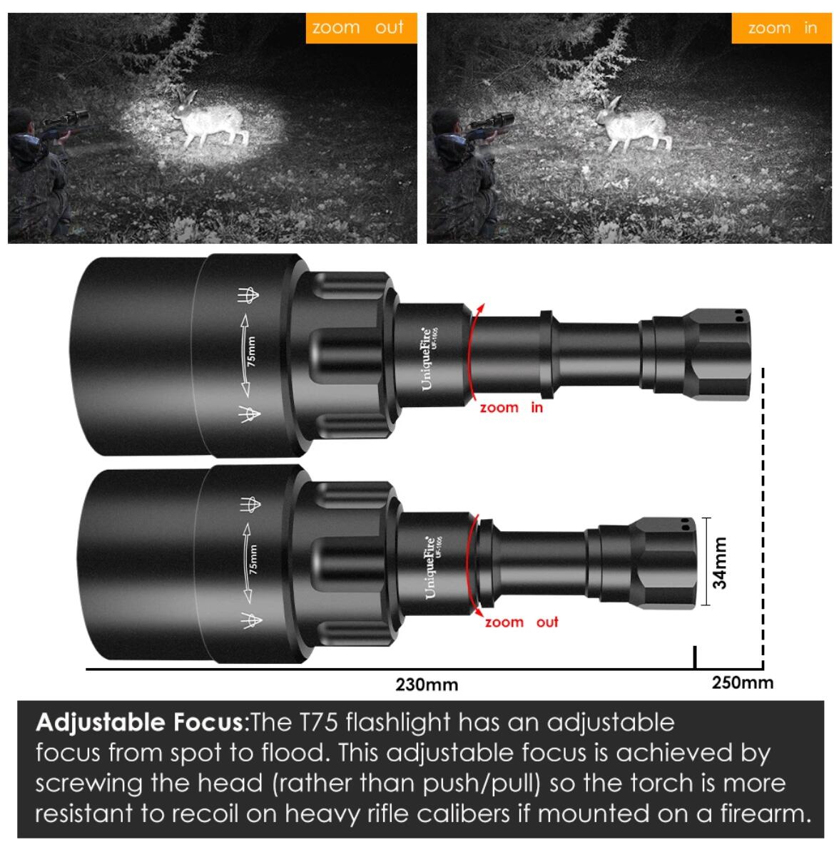 8)zoom funtion to achieve the perfect spot light for hunting.