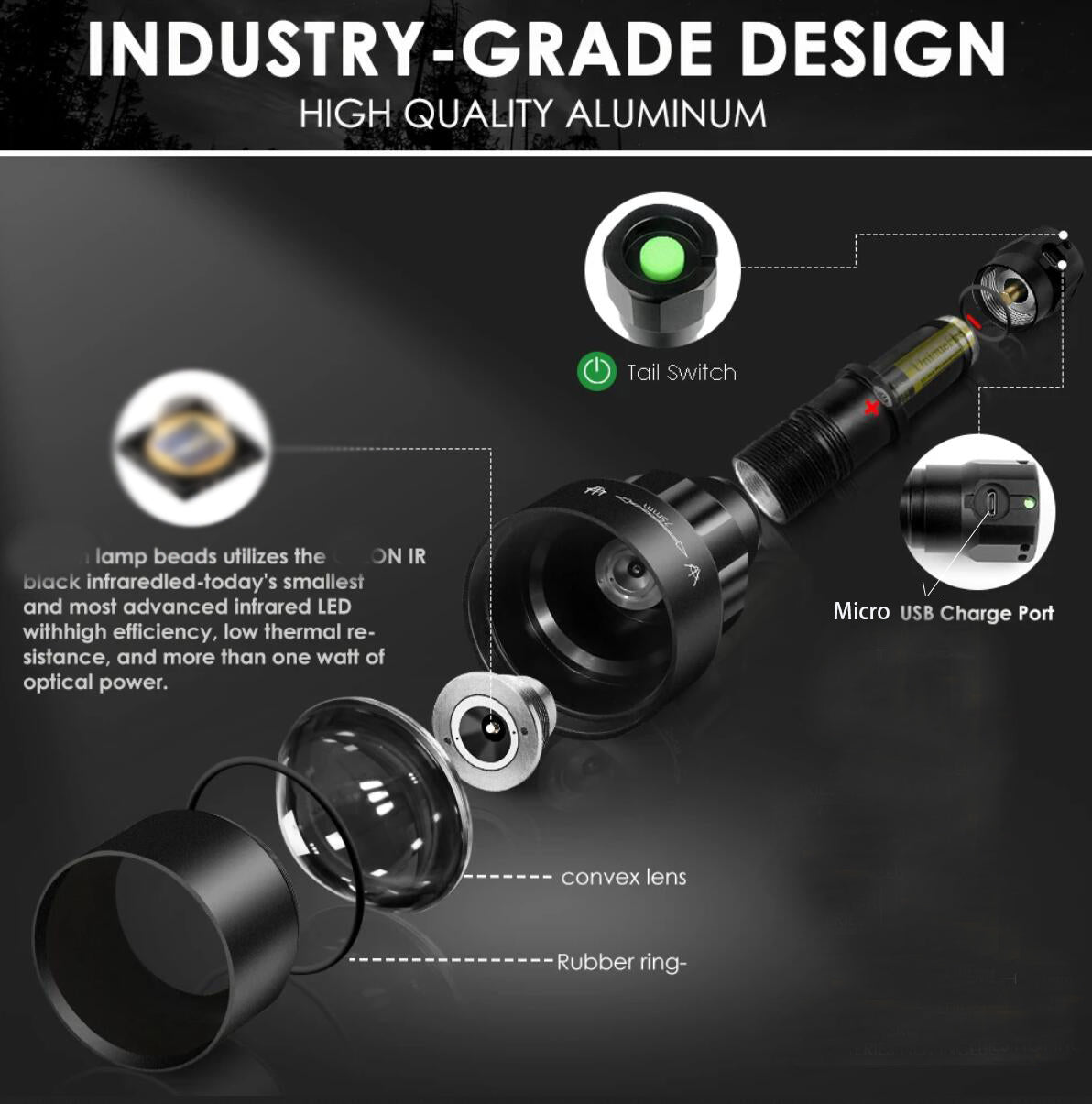 1)Made up of Latest IR Led 850 NM used for night vision & hunting.