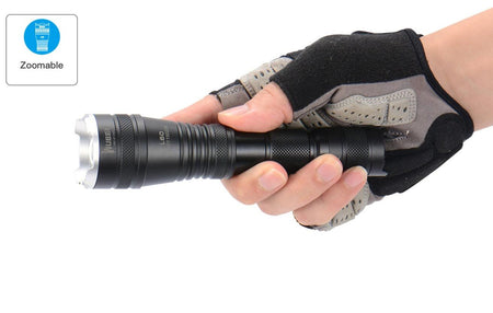 Zoomable Flashlight: You can select focus between spot and flood beams by simply rotate torch head to adjust zoom. Spot light beam distance reach 320 Meters, Also can be wide range for seeing and searching.Perfect for camping, hiking, emergencies, targeted searches and general household use.