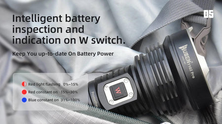 Versatile W Button: Single tap the W button to select outputs, double tap to activate Strobe and SOS. The button can be used to activate Instant Turbo as well.